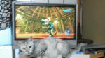 今朝見たら、横向きに寝てるおかんの肩辺りに何食わぬ顔で乗っていた。