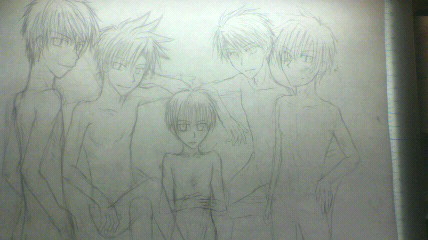 基本的に特に丁寧に書くときはカッチリ身体を描いてから、服を書き込むので、全員裸で何だかハレンチきわまりない。