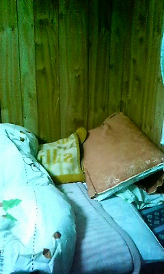 一見、枕が二つ並んでいるように見受けられますが、黄色いやつは枕でも、クッションでもなく、まさに件のおかかちゃんがくるまれている毛布なのであります。